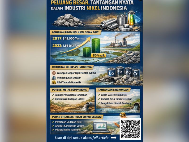 Ke depan, Indonesia memiliki peluang besar untuk menjadi pengendali utama pasar nikel dunia. Namun posisi tersebut tidak hanya ditentukan oleh besarnya cadangan, melainkan juga oleh kualitas tata kelola, inovasi teknologi, dan keberlanjutan lingkungan. Sinergi antara pemerintah, pelaku usaha, akademisi, dan masyarakat menjadi kunci keberhasilan. Dengan dukungan data geologi yang kuat dan kebijakan yang tepat, nikel Indonesia dapat menjadi motor penggerak pembangunan nasional sekaligus bagian dari solusi transisi energi global.